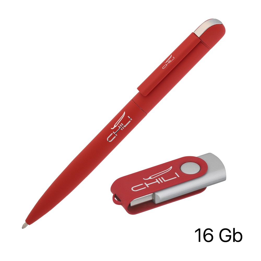 Набор ручка + флеш-карта 16 Гб в футляре, покрытие soft touch, красный