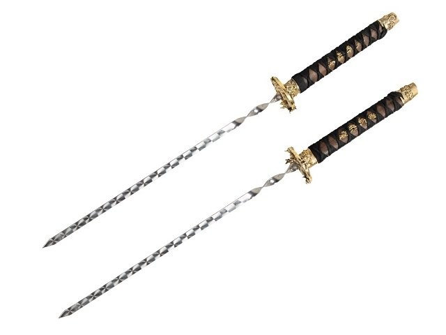 Кейс из сплит-кожи, с повышенной износостойкостью, внутренняя отделка- натуральная кожа с художественным выжиганием. Набор состоит из двух шампуров. Шампур- 82 см, рабочая поверхность- 40 см.