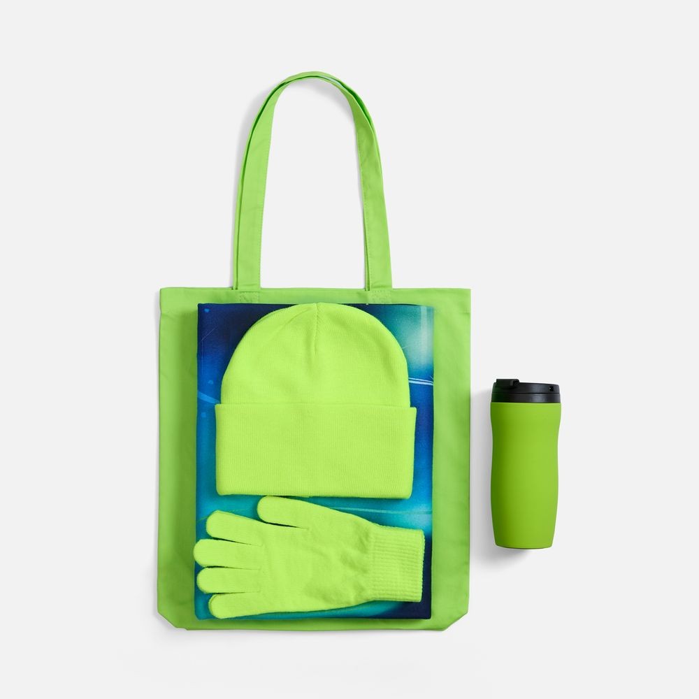 Набор «Северное сиятельство» — это выражение заботы и нетривиальный комплимент в одном шопере! В нем тонко переплетены дух современного города и очарование северной сказки. Его элементы лаконичны и функциональны, а главная изюминка — живописный плед с изображением aurora borealis — добавляет ноту настоящего чуда.