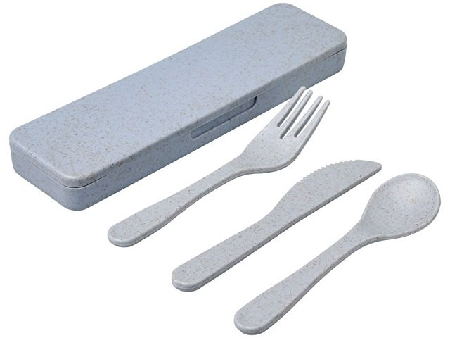 Набор столовых приборов Bamberg состоит из вилки, ножа и ложки. Они хранятся в удобном боксе, выполненном в едином стиле и цвете. Все приборы изготовлены на 50 % из бамбукового волокна и на 50 % - из полипропилена. Этот компактный и стильный набор удобно брать с собой на работу, в путешествие или на пикник.