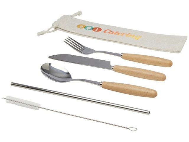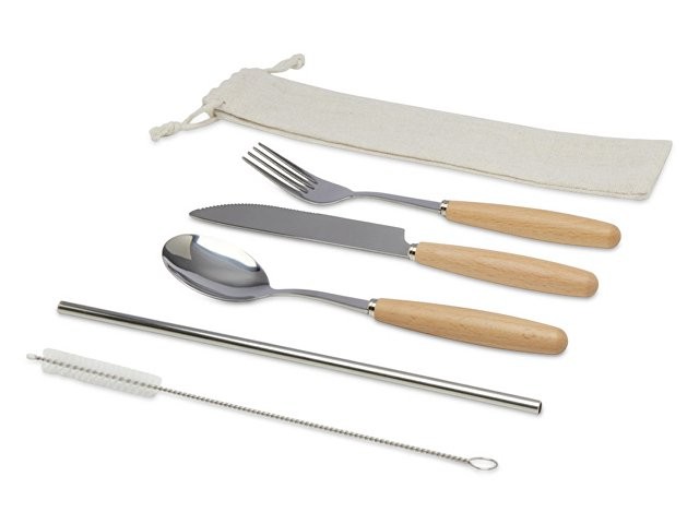 Набор столовых приборов Root — это стильное и практичное решение для тех, кто ценит удобство и экологичность. В комплект входят вилка, нож, ложка, многоразовая соломинка и щеточка для её чистки. Рабочая часть выполнена из прочной нержавеющей стали, а деревянные ручки из бука придают приборам естественный шарм и комфорт в использовании. Всё это аккуратно упаковано в компактный хлопковый мешочек — удобно брать с собой на пикник, в поездку или на работу. Состав: 50% нержавеющая сталь, 50% бук.