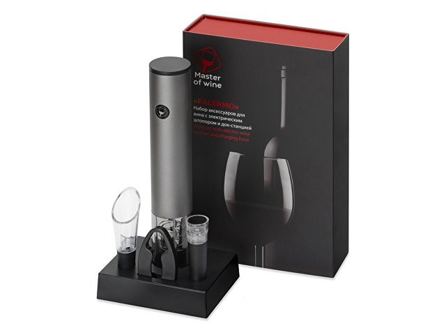 Набор «Palermo» от Master of Wine состоит из электрического штопора из алюминиевого сплава, пробки для вина, аэратора и ножа для фольги — с ним вы сможете откупорить вино и подготовить его к употреблению наилучшим образом. Штопор подзаряжается от док-станции, которая позволяет эффектно разместить винные аксессуары из набора, а также при использовании штопор подсвечивается, что прекрасно видно сквозь прозрачную нижнюю часть — превратите подготовку вина в настоящее зрелище! От вас не требуется никаких усилий: просто правильно разместите штопор поверх горлышка и слегка прикоснитесь к сенсорной кнопке, а если процесс не кажется вам очевидным — поможет инструкция, которая приложена к набору. О том, насколько штопор заряжен, расскажет цвет индикатора заряда: зеленый (полностью заряжен), синий (достаточно заряжен) или красный (требуется зарядка). Кстати, штопор можно использовать и с батарейками типа АА (4 штуки), но с ними запрещается устанавливать штопор на док-станцию. Аэратор-воронка плотно фиксируется на горлышке благодаря силиконовой вставке, проходя сквозь него напиток обогатится кислородом, что поможет раскрыть его вкус. Воронка же не даст капелькам пролиться мимо бокала. Вакуумная пробка решит вопрос недопитого остатка: сохраните вино на следующий день, несколькими движениями откачав воздух из бутылки. Нож для фольги надевается на запечатанную пробку сверху и проворачивается, срезая фольгу круглыми маленькими ножами. Набор упакован в коробку с бархатным ложементом. - качественные материалы - набор позволяет полностью подготовить вино к подаче - все принадлежности просты в использовании - сенсорная кнопка - штопор работает на аккумуляторе или батарейках - док-станция для подзарядки, а также для удобного размещения комплектующих
