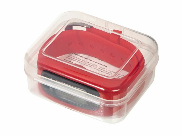 Наручные часы с возможностью отображения времени, калорий, шагов и дистанции. Есть переключение между метрической и британской системами измерений. На силиконовом ремешке можно сделать гравировку. Часы упакованы в пластиковую коробку, которую можно использовать для нанесения. Батарейка в комплекте.