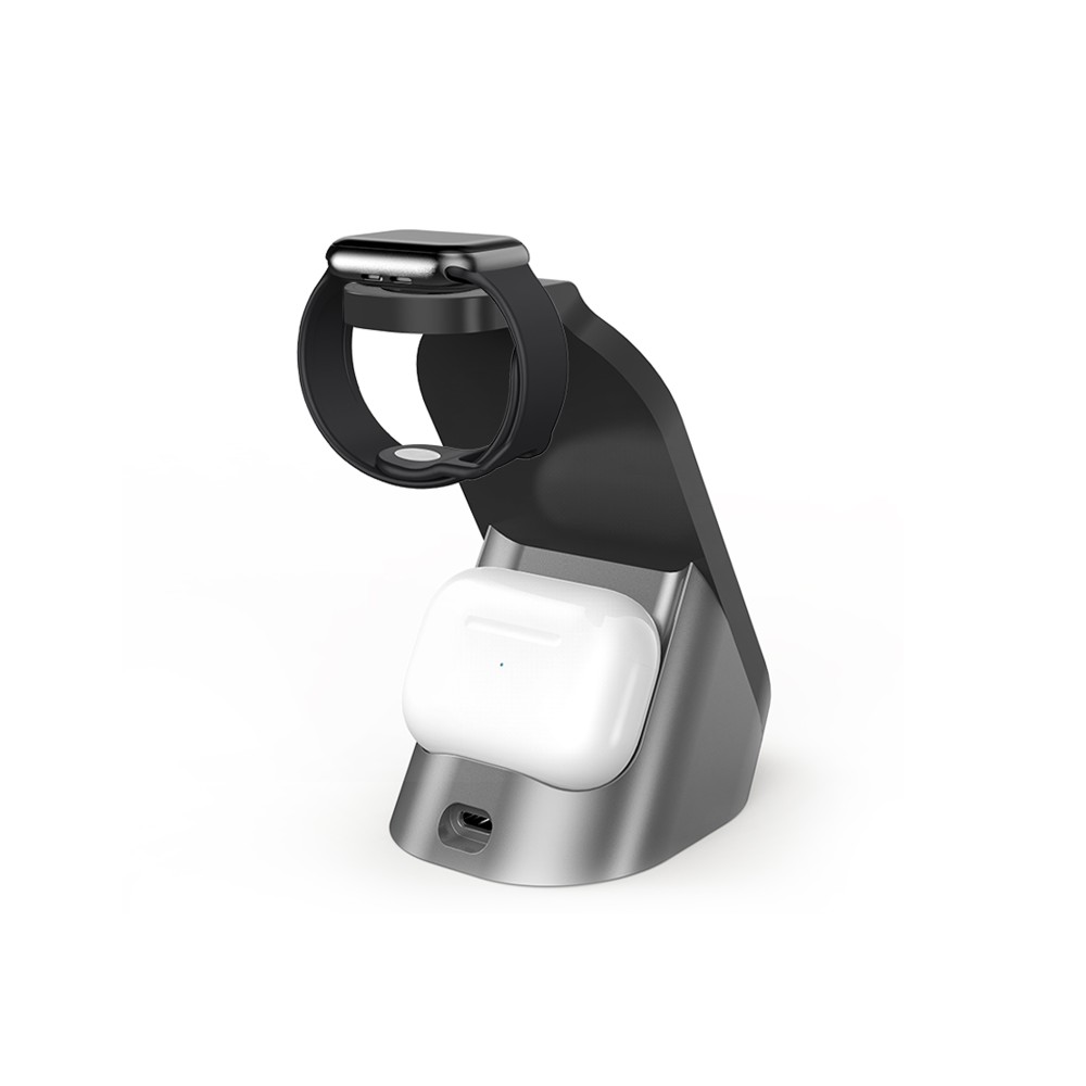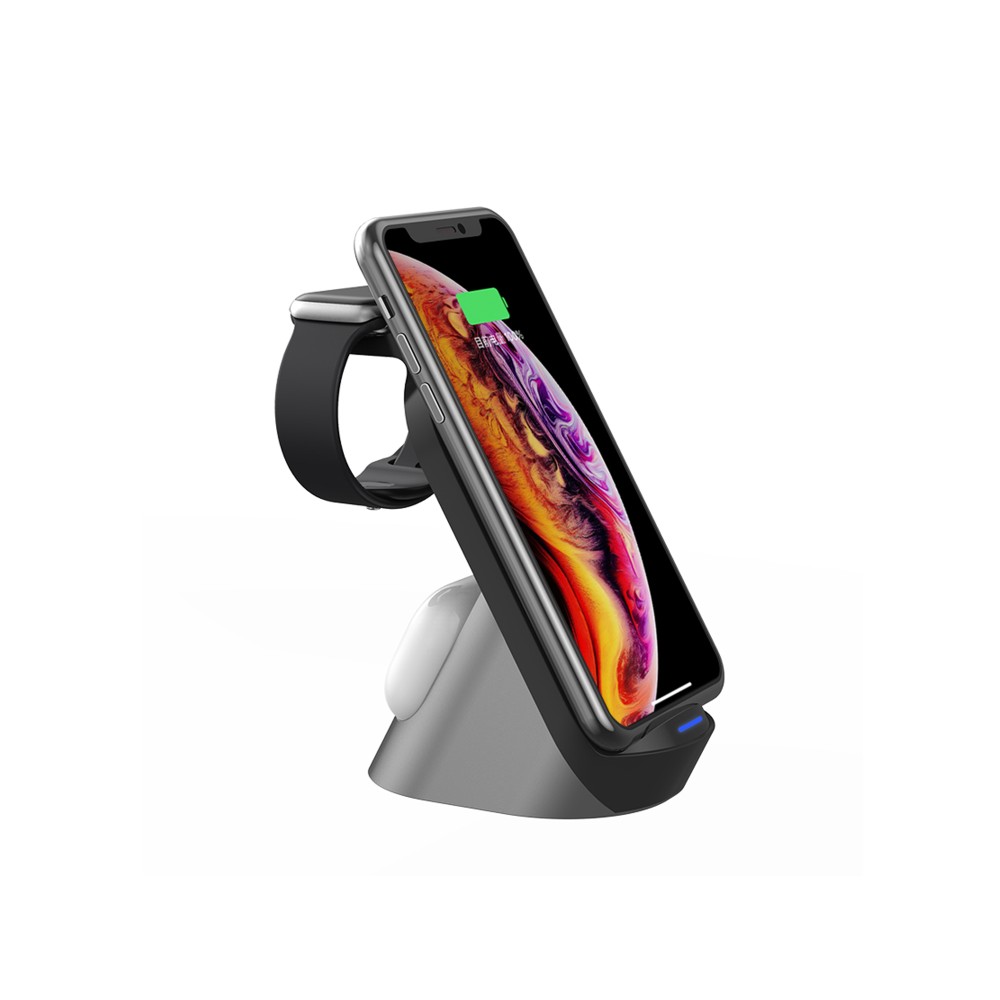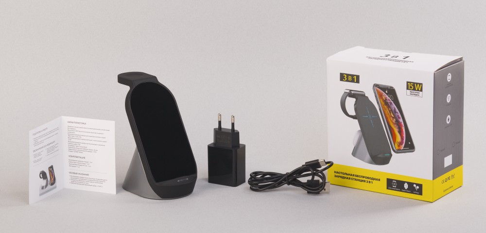 Настольная зарядная станция - это компактное решение для одновременной быстрой беспроводной зарядки смарт-часов (Apple watch), наушников и смартфона.