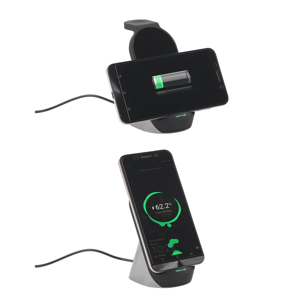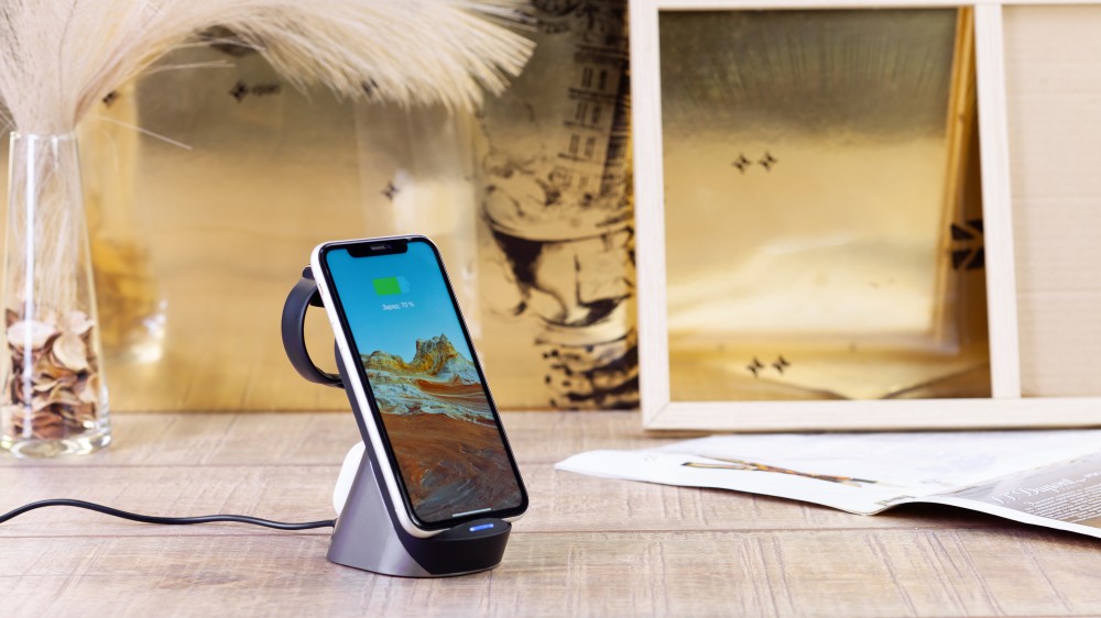 Зарядная станция совместима со всеми мобильными устройствами Qi-стандарта.