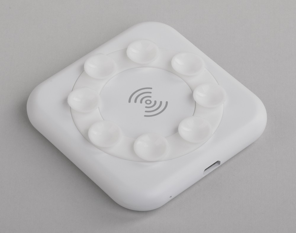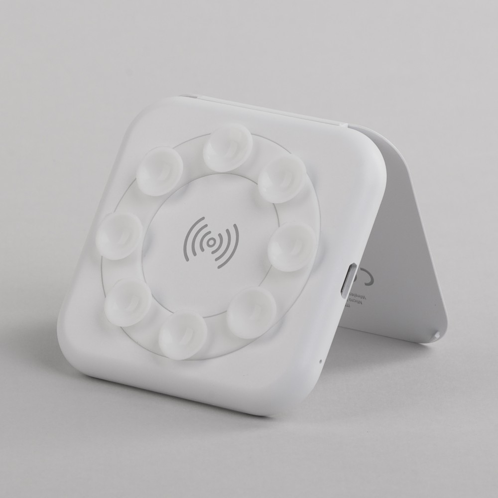 Компактное беспроводное зарядное устройство «Sattelite» сочетает в себе функцию беспроводной зарядки и подставку. Кроме того, оно имеет удобное крепление на присосках, благодаря чему его легко закрепить на смартфоне!