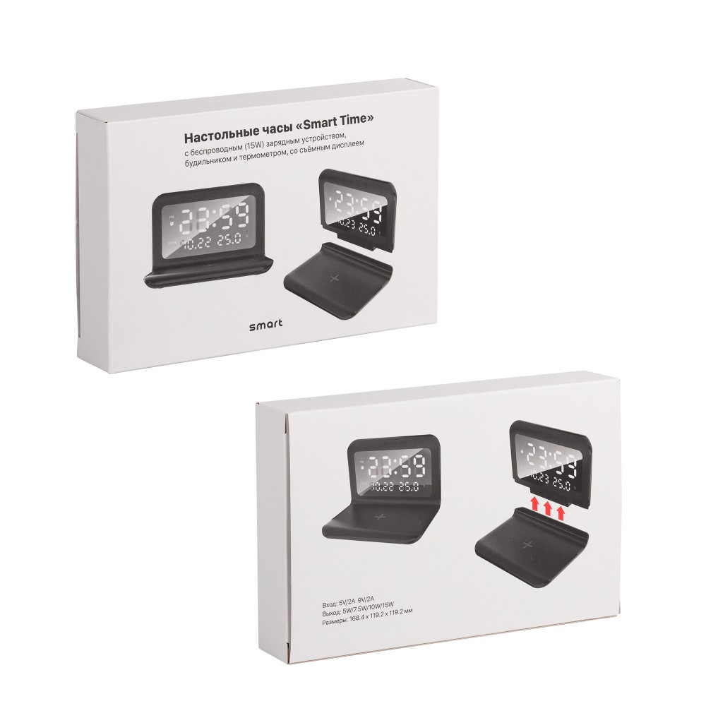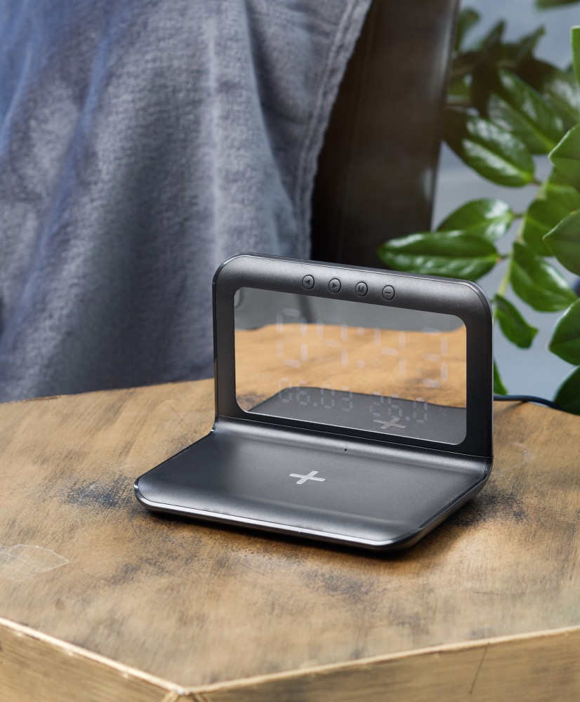 Многофункциональное устройство 3 в 1 - часы с будильником + зарядная станция с быстрой беспроводной зарядкой 15W + комнатный термометр.