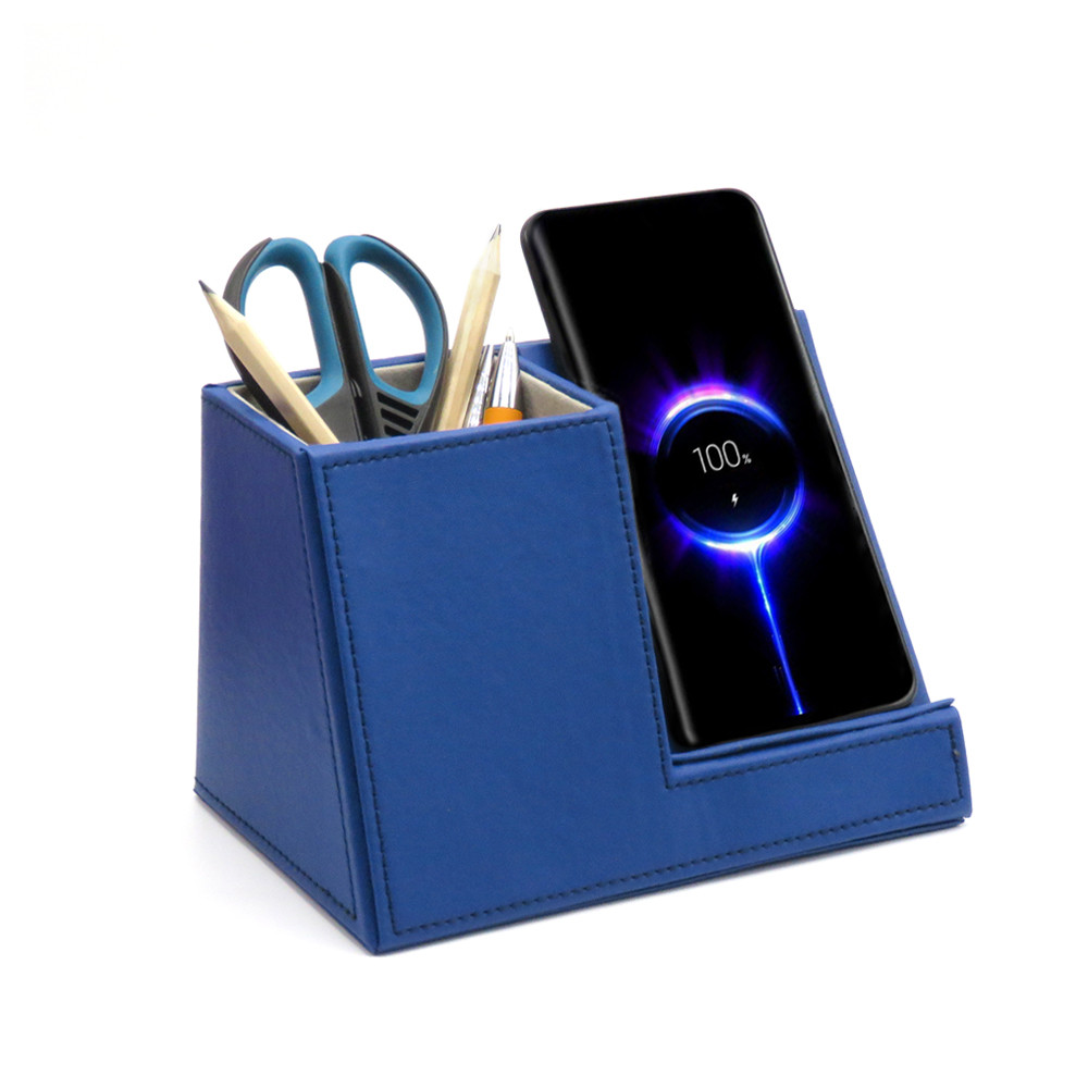 Настольный органайзер Ron c беспроводной зарядкой, Синий