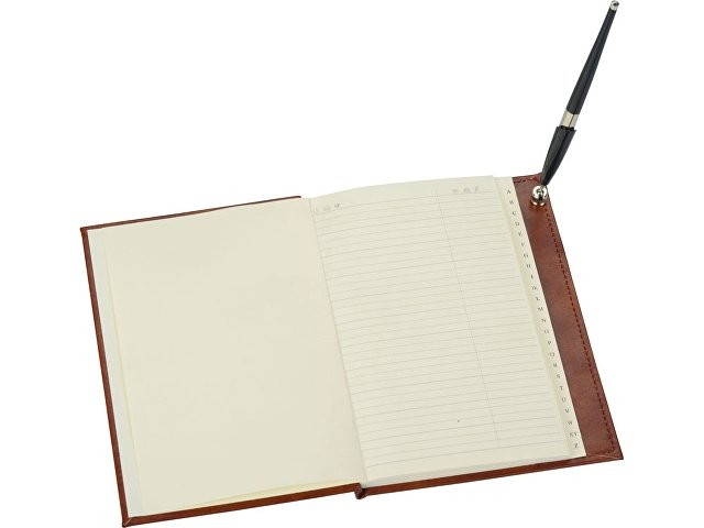 Расчет нанесенияОригинальный настольный прибор состоит из записной книжки и ручки. Обложка блокнота оснащена держателем для ручки и задекорирована изысканным украшением. Прибор станет настоящей настольной книгой руководителя.