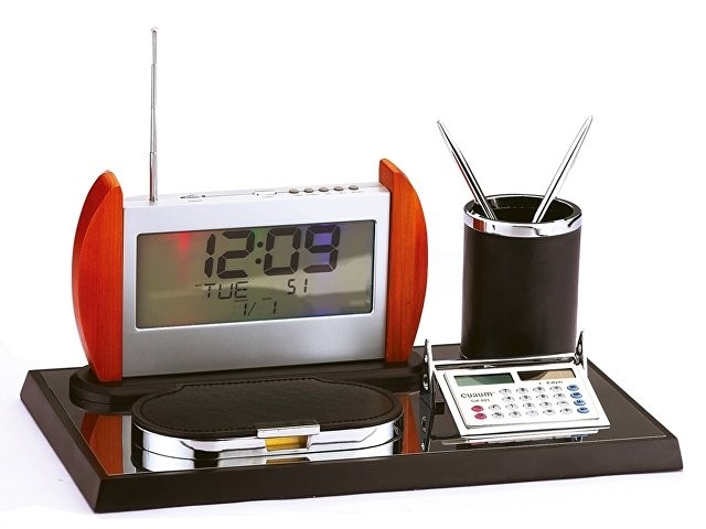 Настольный прибор "Монреаль": часы, радио, калькулятор, подставка под ручки, бумажный блок