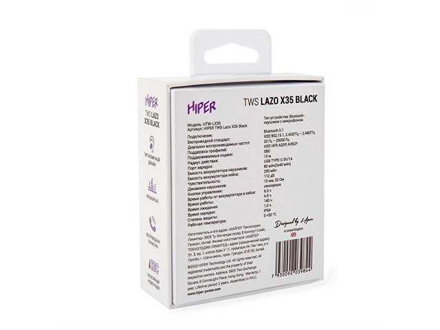 LAZO X35 – это беспроводные стерео наушники для тех, кто ценит практичность, функциональность и точность. Вы почувствуете максимальное удобство в управлении музыкой или входящими звонками, касаясь сенсорных кнопок, не доставая телефон из кармана. Наушники надёжно фиксируются в ушной раковине. • Подключаются к смартфону или другому девайсу по Bluetooth 5.1. • Радиус действия сигнала 10 метров. • Чёткость звука обеспечивают динамики 10 мм, 32 Ом, чувствительностью 112 дБ. • Ёмкость аккумуляторов в каждом наушнике 40 мАч, время работы 4 часа. • Работа в режиме ожидания 140 часов, время зарядки всего 1.5 часа. • Степень защиты от пыли и влаги IP54. • Широкий функционал гарнитуры дополняет оригинальный зарядный кейс с откидной крышкой и цифровым дисплеем с отображением уровня зарядки в процентах. • Кейс компактный и плоский, благодаря чему легко помещается в карман джинс.