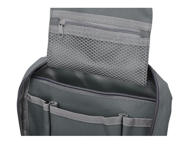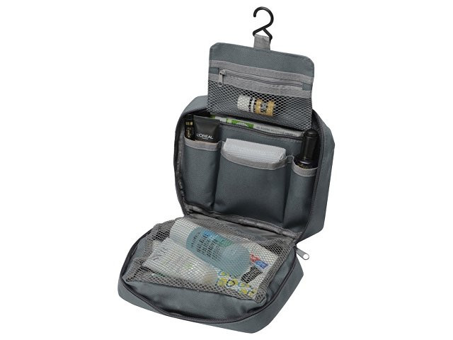 Несессер для путешествий – неотъемлемый атрибут комфортных поездок, служащий для компактного хранения различных мелочей. Аксессуар также пригодится для походов в спортзал и просто поддержания порядка дома. Это превосходный подарок любителю путешествий, а также отличный вариант промо-презента для рекламных кампаний. Большая поверхность позволяет нанести логотип или слоган фирмы. • Вместительное пространство с двумя большими отделениями и несколькими карманами дает возможность эргономично распределить весь дорожный арсенал косметических и туалетных принадлежностей. • Крючок позволяет подвесить аксессуар, например, в уборной поезда или гостиничном номере, в случае отсутствия полки. • Оптимальные размеры, не превышающие формат А4, позволяют легко разместить несессер в любом чемодане или дорожной сумке.