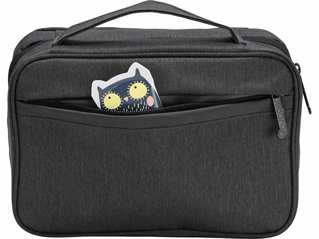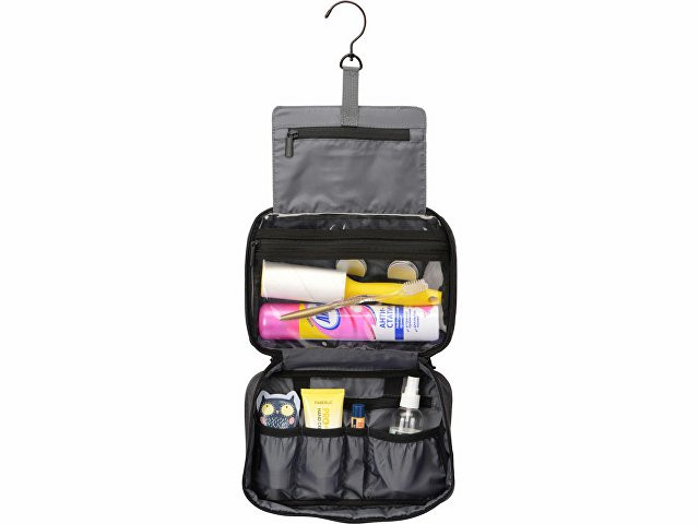 Вместительный несессер от Voyager состоит из множества карманов, отделений и фиксирующих резинок, которые позволяют разместить все необходимые вам в поездке вещи наилучшим образом. Несессер — часть линейки District от Voyager, выполнен в том же стиле и цветовой гамме, что позволяет создавать гармоничные комплекты и подарочные сеты с вашим нанесением. Несессер раскладывается как книжка на две створки и дополнительную секцию с металлическим крючком для подвешивания, карманом на молнии и фиксирующей резинкой. Металлический крючок позволяет подвешивать полностью заполненный несессер, поскольку способен выдержать большой вес, кроме того, вешалка проворачивается вокруг своей оси, что позволяет использовать эту модель с рейлами или в шкафу. Центральная секция имеет прозрачное большое отделение на молнии из ПВХ, внутри которого — три фиксирующих резинки для флаконов или иных принадлежностей. Благодаря выбранному материалу это отделение легко можно протереть влажной салфеткой, если содержимое бутылочки с шампунем или иной косметикой протекло. Вторая створка состоит из большого плоского кармана на молнии, двух резинок, которые подойдут для фиксации зубной щетки, двух узких и двух квадратных карманов. Имеет наружный карман на молнии. Материал несессера позволяет легко споласкивать его при необходимости, ткань быстро высыхает. - вместительный, имеет множество карманов, резинок и отделений - удобная ручка для переноски и металлическая вешалка-ключок - быстросохнущий материал - удобно раскладывается на три секции, подходит даже для длительных поездок