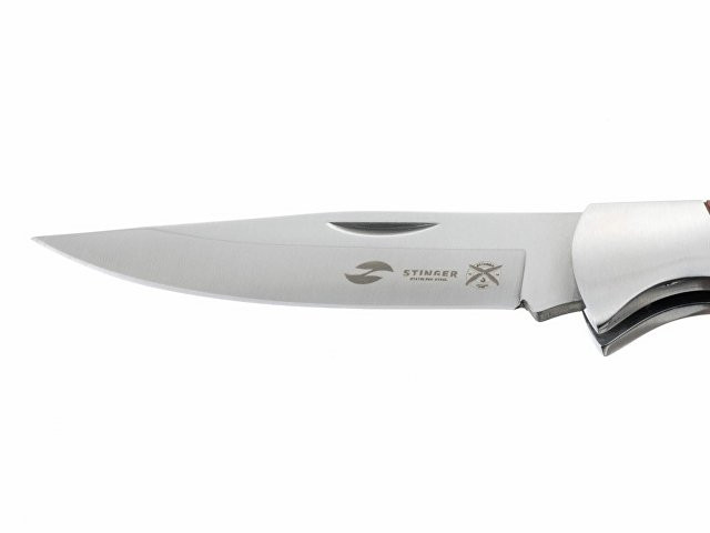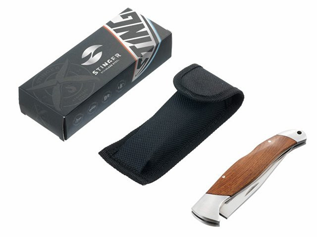 НОЖ СКЛАДНОЙ STINGER Материал лезвия: нержавеющая сталь марки 420 Материал рукояти: нержавеющая сталь, палисандровое дерево Фиксатор лезвия: Back Lock Длина ножа: 225 мм Длина клинка: 100 мм Толщина клинка: 3 мм Вес: 133 г Цвет рукояти: коричневый Метод открывания клинка: за выемку на лезвии Особенности: с отверстием под темляк В комплекте: нейлоновый чехол