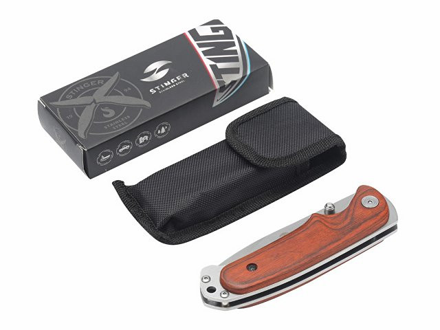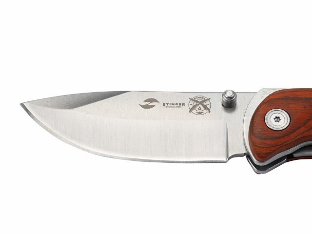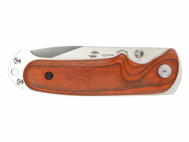Нож складной Stinger, 91 мм, (серебристый), материал рукояти: сталь/дерево (серебристо-коричневый)