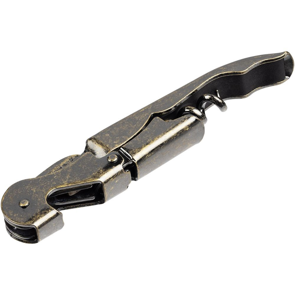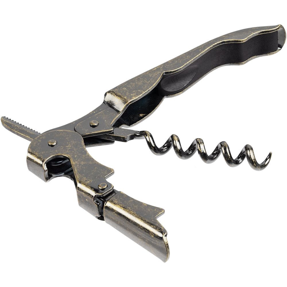 Штопор небольшого размера, так что его удобно брать с собой в путешествия и на пикники.Нож выполнен в оттенке античного золота с эффектом потертостей — как будто из поколения в поколение предавался в семье виноделов, и с его помощью была откупорена не одна бутылка. Эта версия особенно удачно впишется в интерьер кухни, винотеки или ресторана, если они оформлены в неоклассческом, классическом американском или прованском стилях.