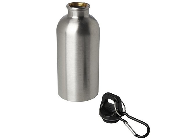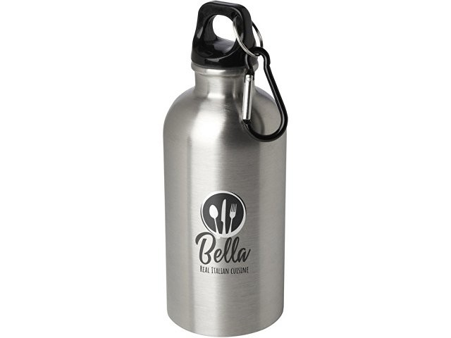 Одностенная бутылка для воды с карабином Oregon, изготовленная из нержавеющей стали, сертифицированной по стандарту RCS, объемом 400 мл - Серебряный