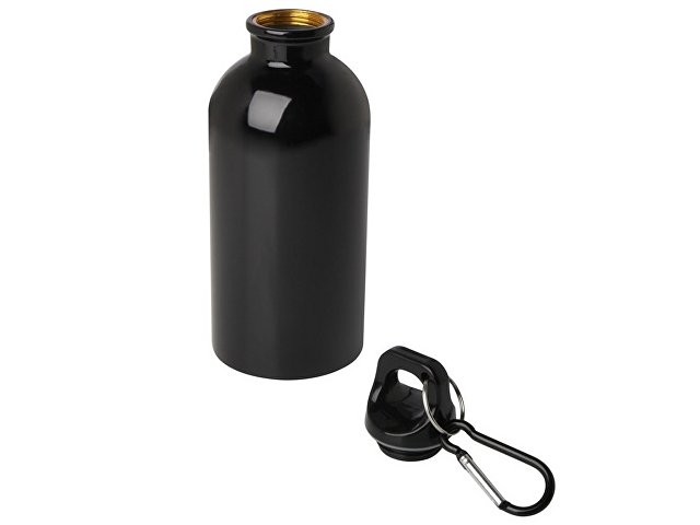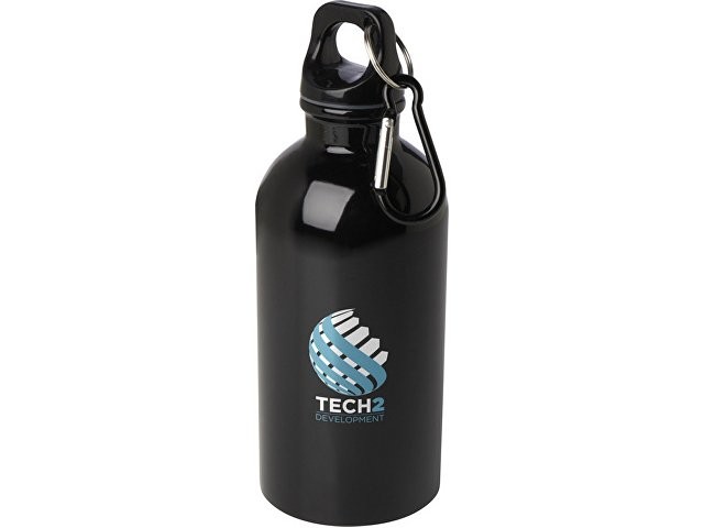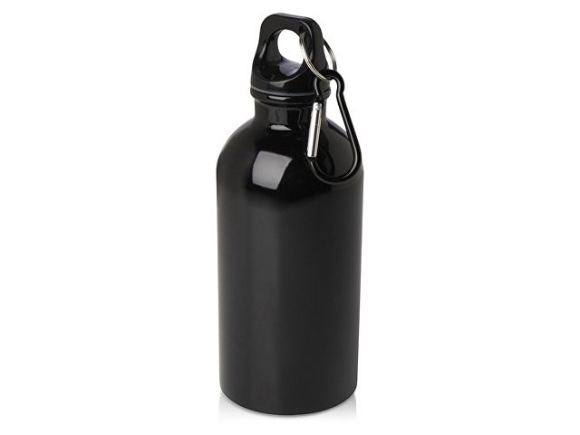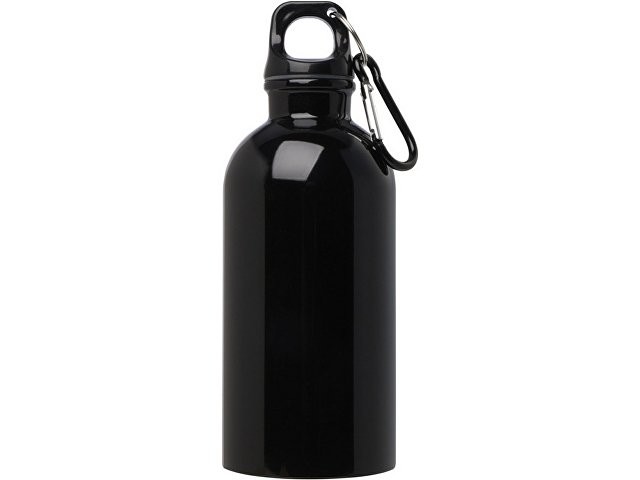 Одностенная бутылка для воды с карабином Oregon, изготовленная из нержавеющей стали, сертифицированной по стандарту RCS, объемом 400 мл - сплошной черный