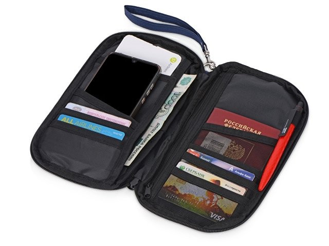 Органайзер для документов "Keep Safe" – незаменимый аксессуар для современного путешественника. Он позволяет держать под рукой все важные документы и легко извлекать их при необходимости. Изготовлен из плотного текстиля, который устойчив к износу и при необходимости легко чистится. • Несколько отделений разной формы позволяют разместить паспорт, проездные билеты, путевки, пластиковые карточки, удостоверения и другие важные документы • Плотные стенки надежно защищают содержимое от деформации и обеспечивают сохранность документов во время длительной транспортировки • Крепление для ручки фиксирует письменные принадлежности, и они не выпадут при открытии органайзера • Ремешок делает органайзер удобным для переноски в руке