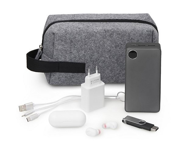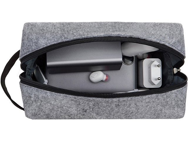 Органайзер для электроники и проводов "Felt" из RPET-фетра с ручкой, серый с черным