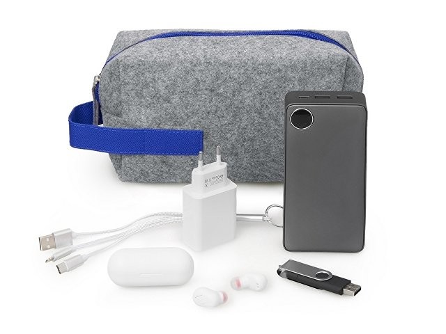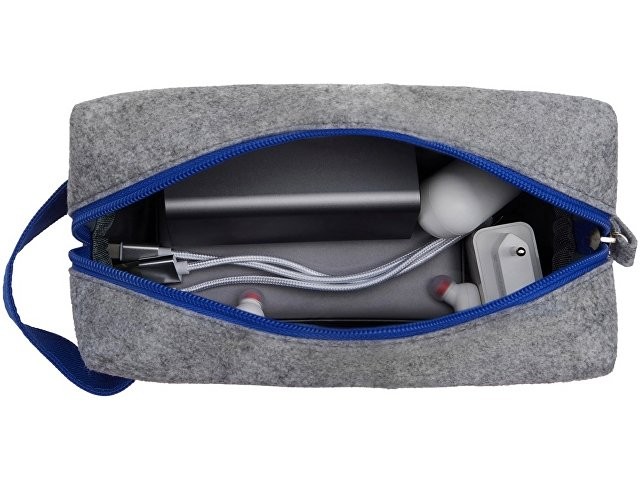Органайзер для электроники и проводов "Felt" из RPET-фетра с ручкой, серый с синим