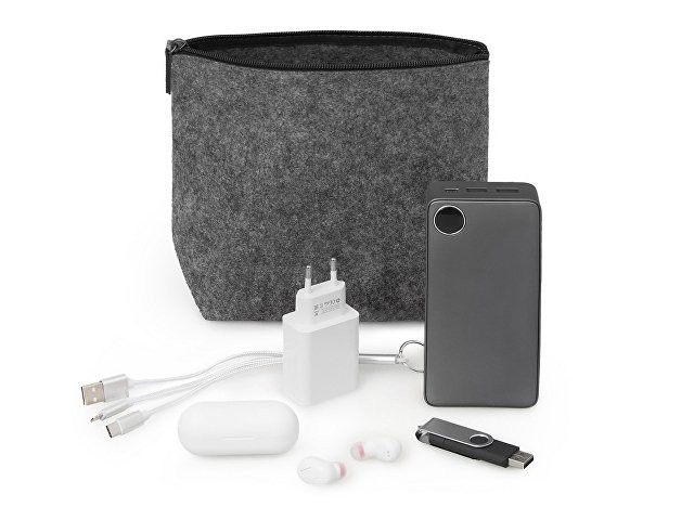 "Felt" - органайзер для электроники из мягкого, но прочного RPET-фетра. Он не только стильно выглядит, но и обеспечивает дополнительную защиту вашим гаджетам. Нежный материал оберегает экраны и корпуса от царапин, а компактная форма идеально подходит для хранения проводов, пауэрбанков, наушников и USB-накопителей. Практичное решение для организации вашего цифрового пространства.