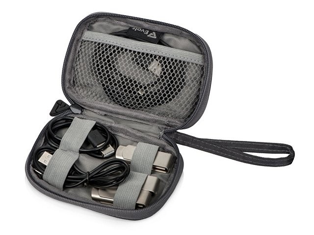 Органайзер для проводов – практичное решение для организации хранения различных шнуров к электронным аксессуарам. Органайзер изготовлен из плотного материала, устойчивого к разрыву, благодаря чему надежно защищает содержимое от механических повреждений. • Сетчатый карман и отсеки на резинке позволяют аккуратно распределить провода так, чтобы они не спутывались и были легкодоступны в любой момент • Компактные размеры и наличие ремешка делают органайзер удобным для ношения с собой – он легко помещается в кармане или сумке