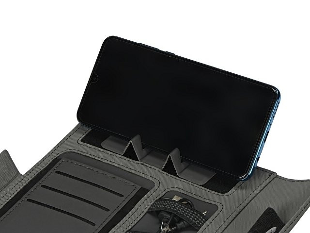 Органайзер «Powernote» — стильный бизнес-подарок, который в полной мере воплощает идею многофункциональности. С его помощью можно заряжать гаджеты как беспроводным способом, так и через кабель, эргономично хранить целый ряд предметов — от ручек и проводов до кредитных карт — и даже делать записи. Элегантность внешнего вида дополняется приятной текстурой обложки из мягкого полиэстера и высоким качеством внутренней отделки с элементами soft-touch покрытия. Практичный и технологичный аксессуар, который в состоянии заменить сразу несколько вещей. - Встроенный пауэрбанк емкостью 5000 мАh. - Возможность зарядки как беспроводным способом, так и через кабель. - Удобная магнитная застежка. - Качественные материалы. - Отделение для телефона. - Блокнот для записей 64л.