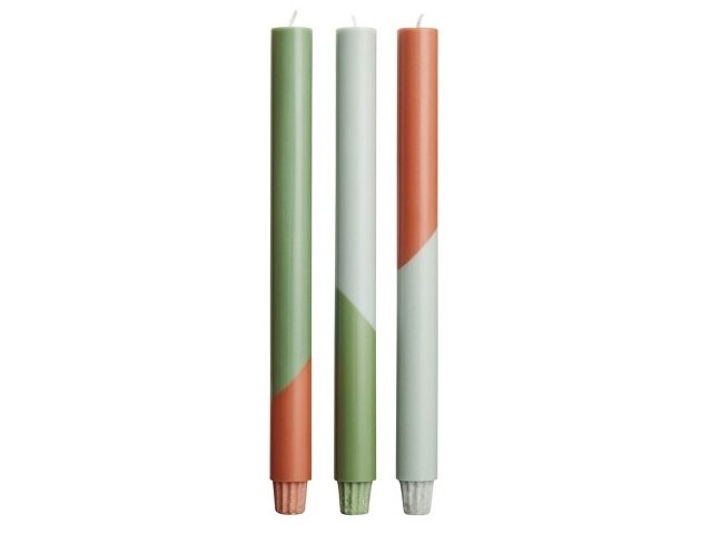Свечи для ужина Eden отличаются яркой диагональной цветовой палитрой и изготовлены вручную из воска на растительной основе, не содержащего парафина. Они не имеют запаха, имеют фитиль из 100% хлопка и горят чисто. Каждая покупка способствует посадке дерева для фермеров в Африке и поддерживает специальный проект справедливой торговли на острове Ява, Индонезия. Комплект из трех штук. Время горения свечи: 18 – 20 часов. Воск из пальмовых ядер.