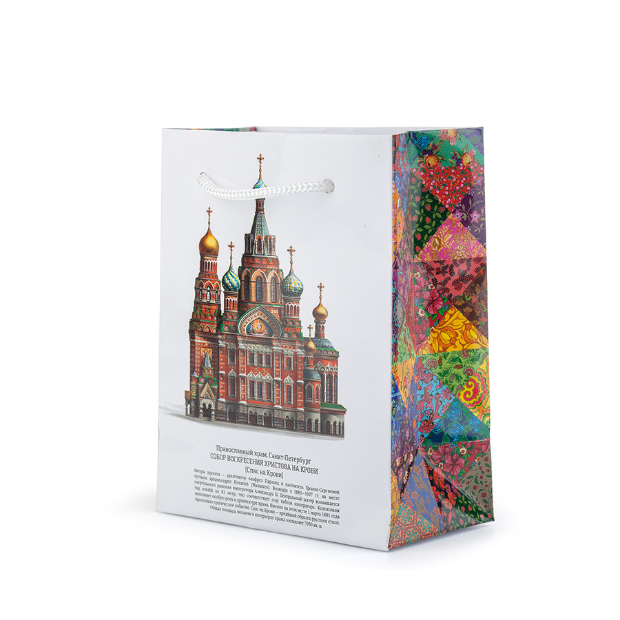 Пакет маленький Сугревъ с изображением собора "Спаса на Крови", разные цвета