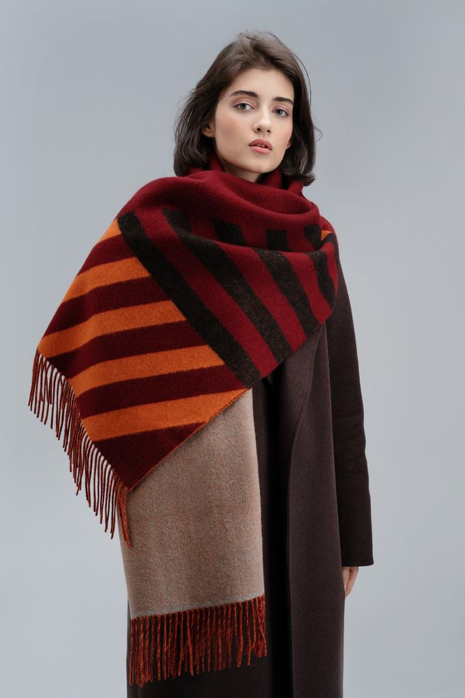 Объемный палантин Charming с геометрическим рисунком добавит строгому образу легкости и задора.