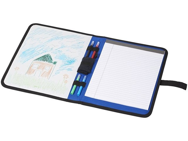 Расчет нанесенияПапка Veela A4. Папка A4 с текстильной застежкой. Включает блокнот с 30 страницами линованной бумаги и доску. В комплект входят маркеры и салфетки. Полиэстер 600D.