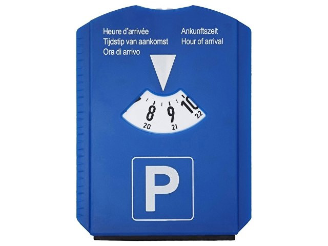 Парковочный диск 5 в 1. Парковочный диск со скребком, резиновым дворником, держателем монет и измерителем протектора. Большая поверхность для нанесения лого. Текст "Время приезда" на голландском, английском, французском,немецком и итальянском языках.