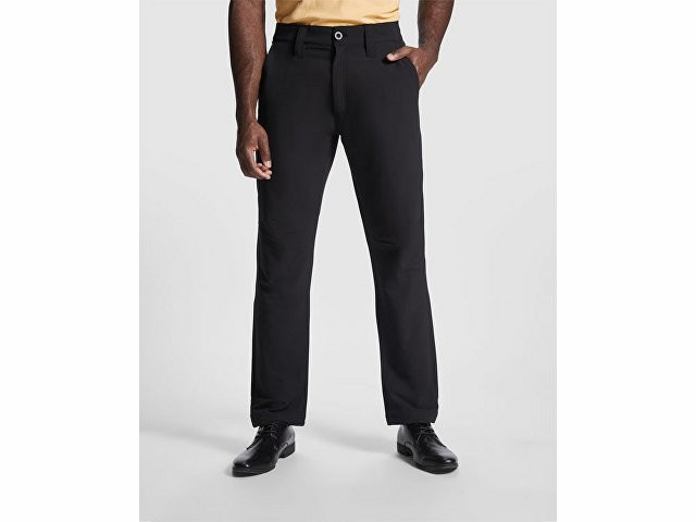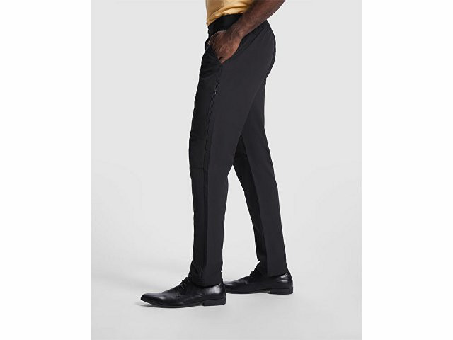 Длинные брюки унисекс из техничной ткани. - Регулируемый эластичный пояс. - Шлевки. - Два боковых наклонных кармана. - Два боковых кармана в швах на потайных молниях. - Задний карман на кнопке. - Защипы на коленях. - Двойной шов на внутренней стороне штанин, шаговом шве и подгибе низа. - Пластиковые регуляторы с эластичной резинкой по низу.
