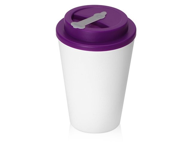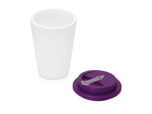 Пластиковый стакан Take away с двойными стенками и крышкой с силиконовым клапаном, 350 мл, белый/фиолетовый
