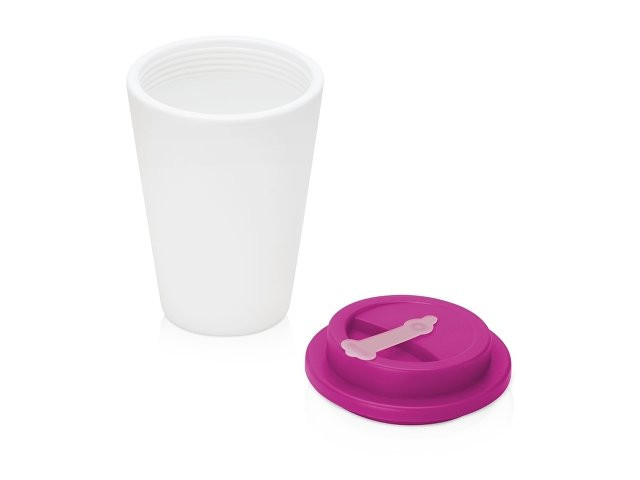 Пластиковый стакан Take away с двойными стенками и крышкой с силиконовым клапаном, 350 мл, белый/фуксия