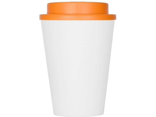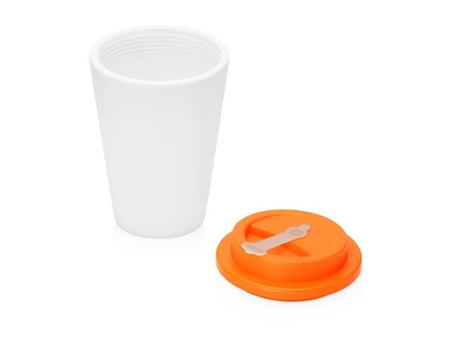 Пластиковый стакан Take away с двойными стенками и крышкой с силиконовым клапаном, 350 мл, белый/оранжевый