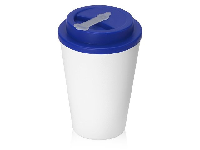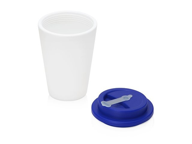 Пластиковый стакан Take away с двойными стенками и крышкой с силиконовым клапаном, 350 мл, белый/синий