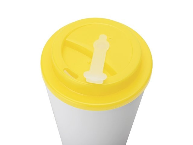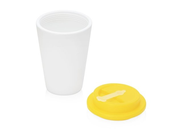 Пластиковый стакан Take away с двойными стенками и крышкой с силиконовым клапаном, 350 мл, белый/желтый