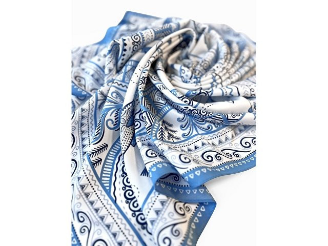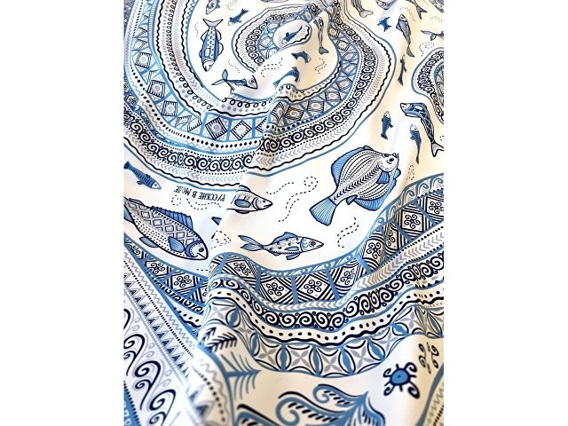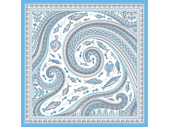 В Архангельской области и на территории Коми протекает река Мезень, впадающая в воды Белого моря. Она щедро кормила северные народы рыбой, и была источником вдохновения талантливых мастеров «Мезенской росписи». Эта роспись считается зашифрованным посланием, где каждый символ имеет свое значение. Платок из коллекции бренда "Русские в моде" посвящён уникальному искусству этой росписи. Изображения спиралевидных орнаментов в виде волн, елочек, рыбок украшают дизайн. Все это означает плодородие стихий земли и воды, энергию солнца, богатство и процветание. Сегодня мезенская роспись - это современный мотив модного аксессуара от Нины Ручкиной. Изящное шёлковое полотно платка, как воды реки-кормилицы, окутает ваш образ нежностью и элегантностью, многократно усилит его красоту и очарование. Пусть наша новинка станет вашим оберегом, символом удачи и преумножения благ! Дизайн платка: Ирина Сказка