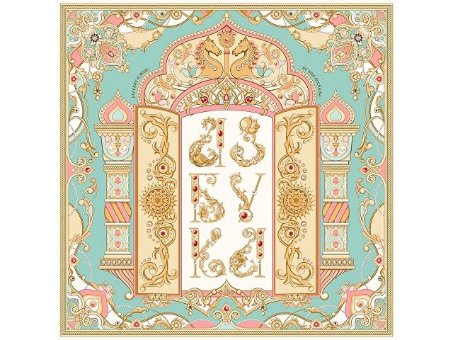 Платок “Русская Азбука” от дизайнера Нины Ручкиной - это зашифрованное послание предков, явившееся на тонкой материи. Мотивы русской архитектуры обрамляют Буквицы, щедро украшенные ажурными орнаментами. Тонкое искусство резных наличников на Руси имело свой сакральный смысл. Вот и наши художники обратились к шедеврам царственной резьбы, чтобы заключить в неё затейливые Буквицы. Замысловатые первые буквы текста всегда были важной частью искусства украшения книг. Таким образом любой текст приобретал сказочный и торжественный вид. Буквица – это начало записанной истории, пограничная точка, в которой повседневная жизнь прерывается и возникает другой мир – тот, о котором рассказывает текст. Мы уверены, что любой повседневный образ, дополненный «Русской Азбукой» станет неповторимым. Мы желаем, чтобы любой день с этим аксессуаром всегда превращался в удивительный путь, полный захватывающих открытий, творчества и волшебства.