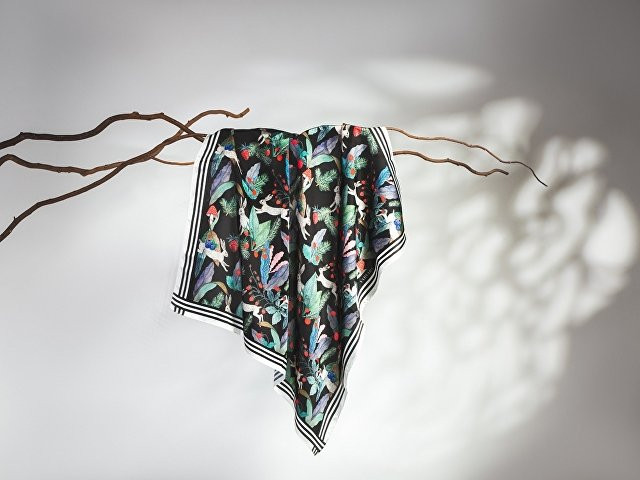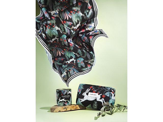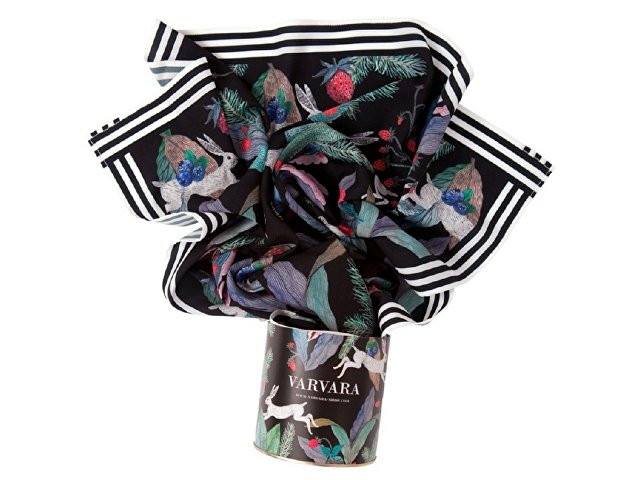 Платок из искусственного шелка размером 70*70 см., с авторским принтом «Зайцы». Принт нарисован художницей вручную специально для бренда Varvara. Художница размышляла на тему русской природы, культуры и искусства - тут и лесная земляника, и сочная зелень, и конечно, сказочные зайцы - как будто только что сошли с полотен В. Васнецова. Платок упакован в подарочный тубус. Бережный уход. Ручная стирка при температуре не выше 30 градусов.