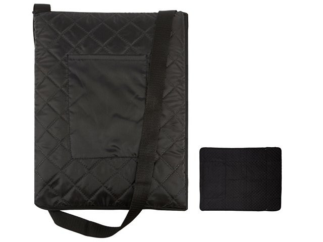 Расчет нанесенияДвухсторонний плед с водоотталкивающим покрытием с одной стороны и мягким флисом с другой. Складывается в сумку на плечо и фиксируется с помощью молнии. В собранном виде имеет регулируемый по длине ремень для переноски и наружный карман для мелочей.