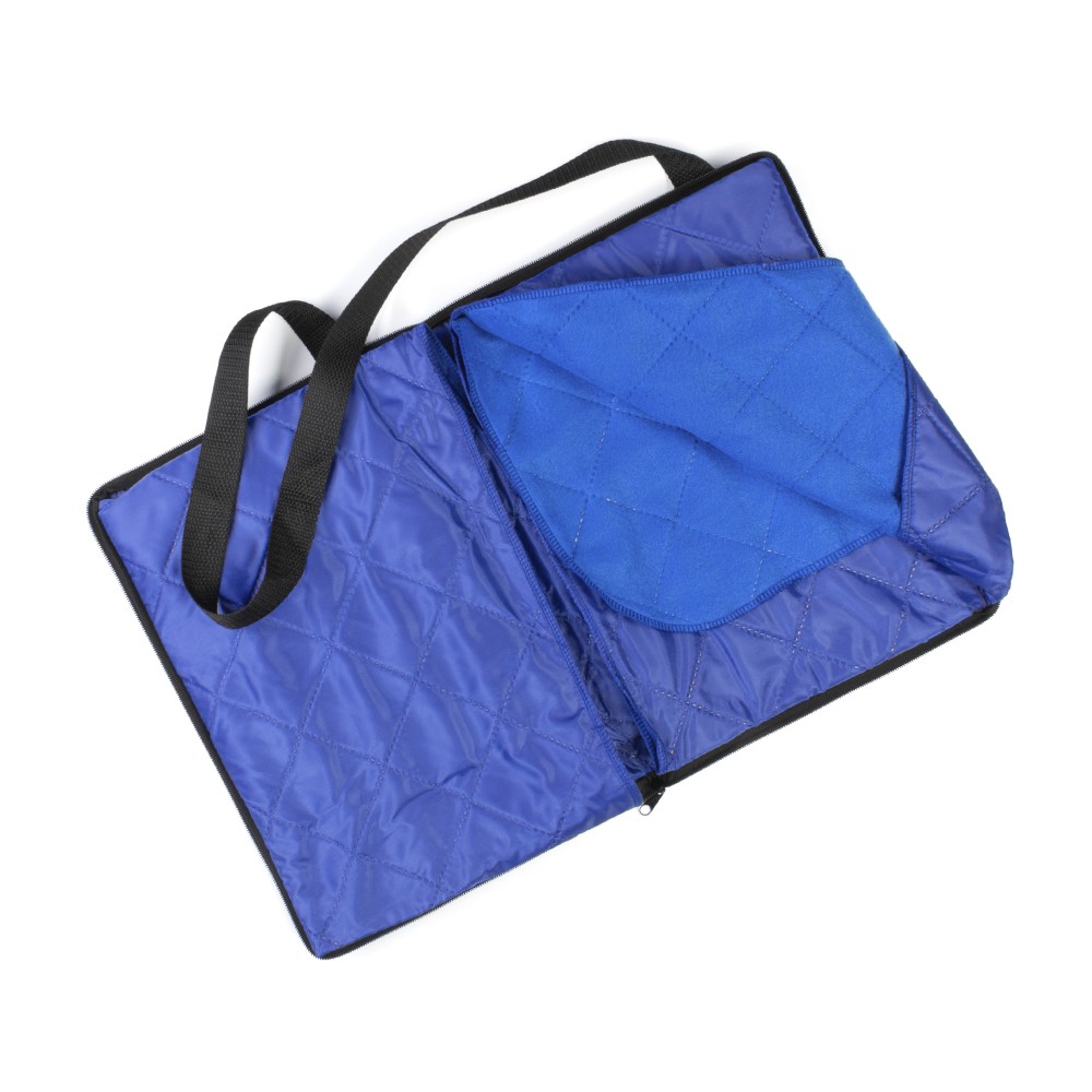 Влагостойкий плед "Summer" для пикника и отдыха на пляже складывается в компактную сумочку для переноски и хранения. В собранном виде внутри остается место для небольшого термоса, зарядного устройства, книги или других малогабаритных предметов, необходимых на отдыхе. С внешней стороны предусмотрен открытый карман 16 х 22 см, хорошее место для персонализации. Основание из влагостойкого полиэстера (оксфорд) обеспечивает защиту от росы, препятсвует налипанию травы и попаданию песка, что значительно облегчает уход за изделием. Внешний слой - флис 220 гр/м2 для комфорта. Периметр обработан оверлоком.