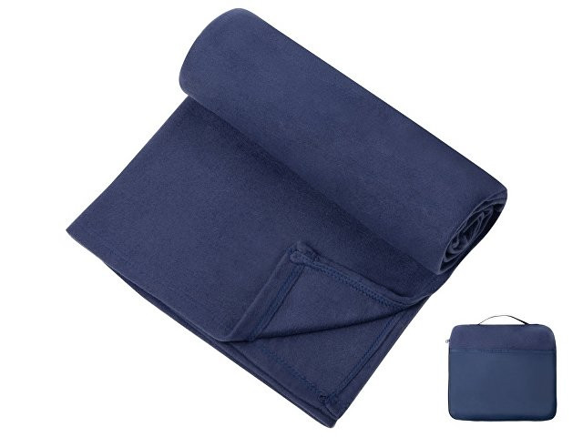 Плед для путешествий Flight в чехле с ручкой и карманом, темно-синий