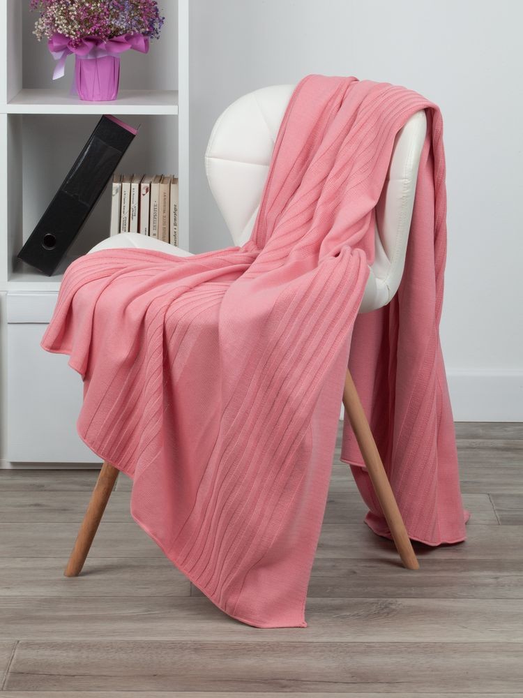 Двусторонний плед рельефной вязки.Поставляется в пакете с липким краем.