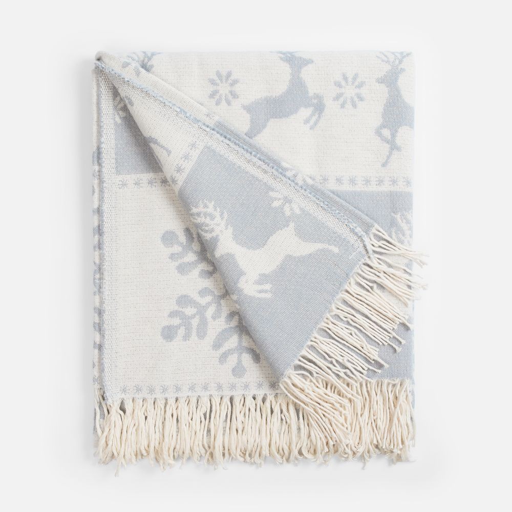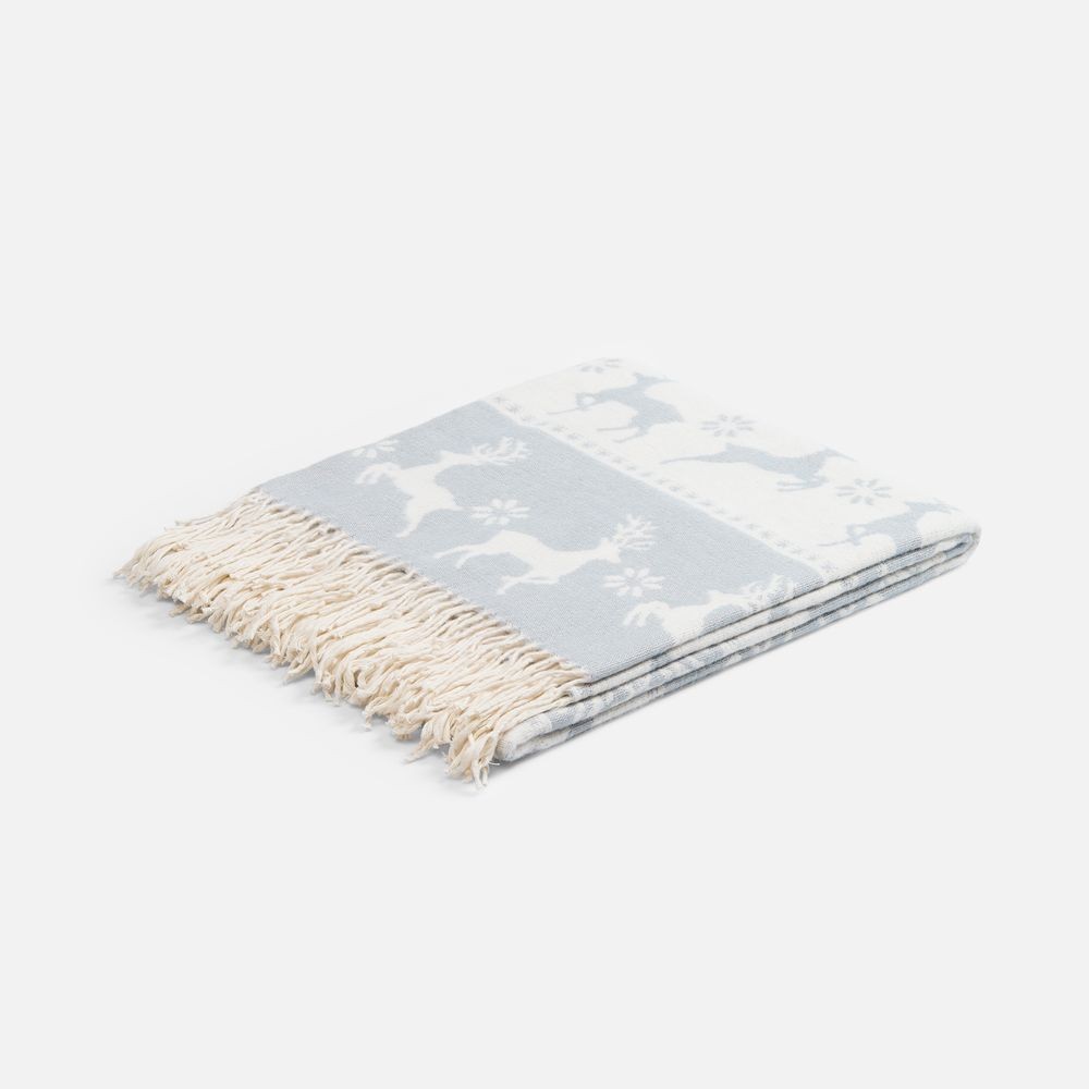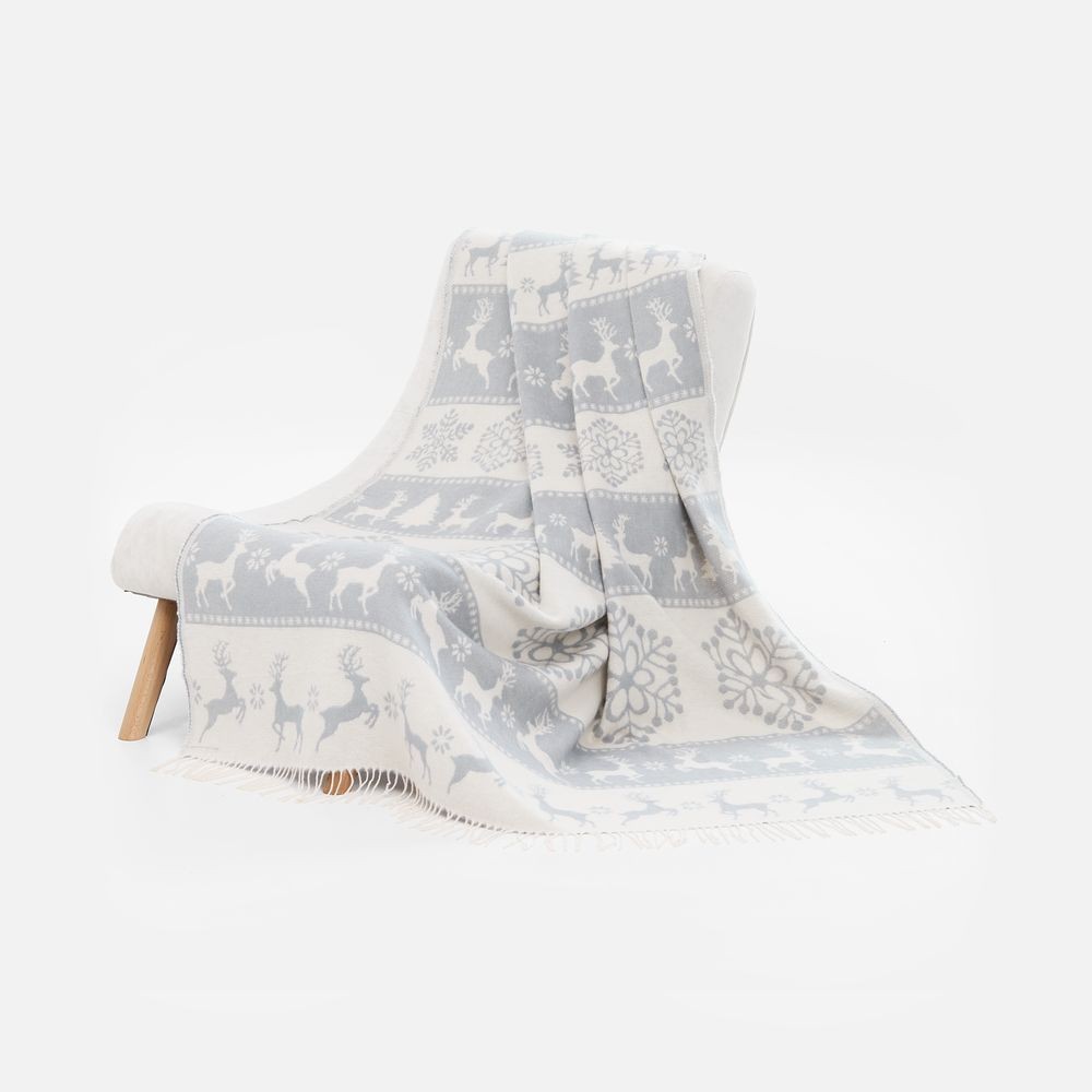 Уникальный жаккардовый рисунок с изображением грациозных оленей и изящных снежинок перенесет в мир северной сказки. Каждая деталь узора тщательно проработана и сразу привлекает внимание, а плед моментально создает неповторимую атмосферу зимнего волшебства.Скандинавия. Тепло и очарование Севера.