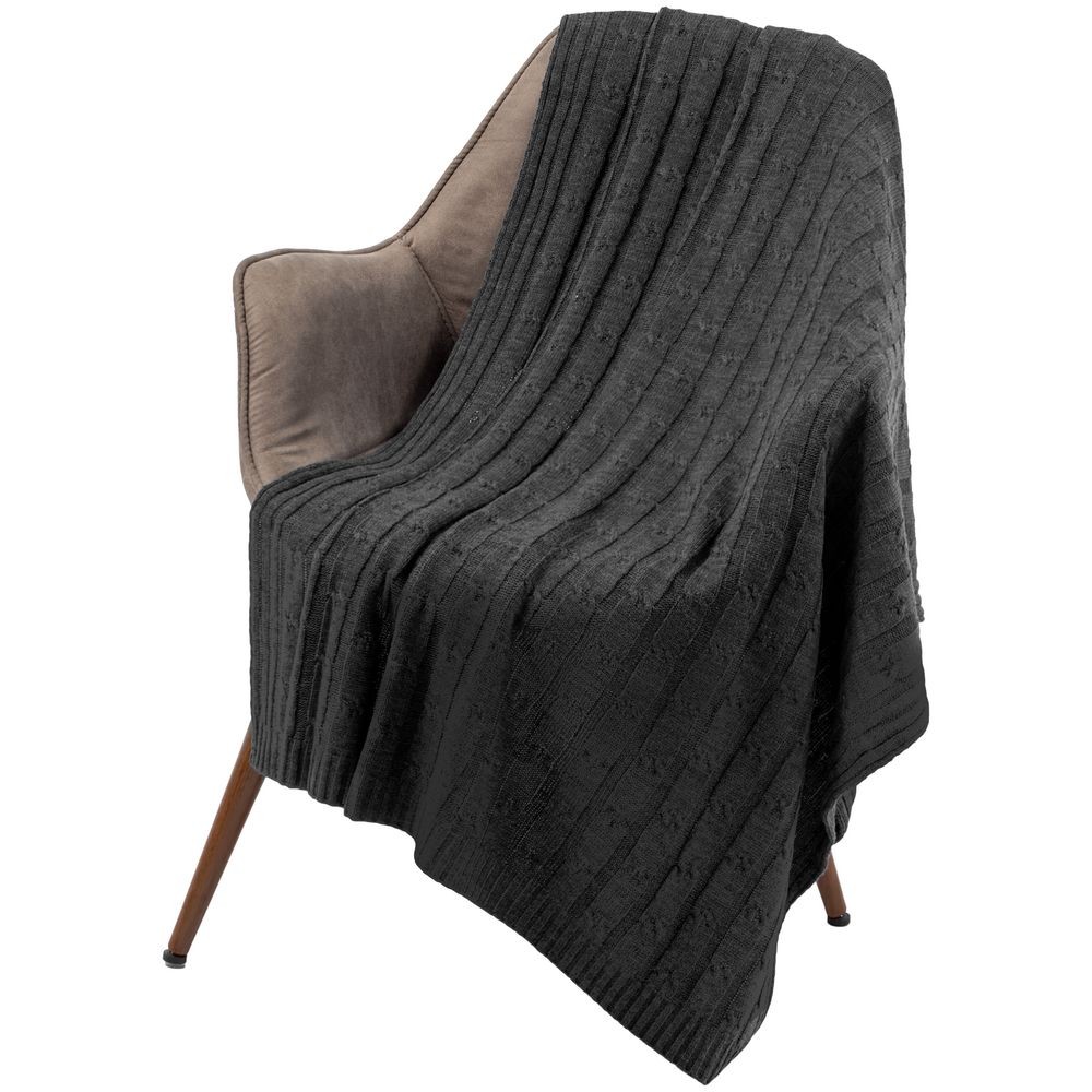 Вязаный плед фактурной вязки из меланжевой пряжи.
