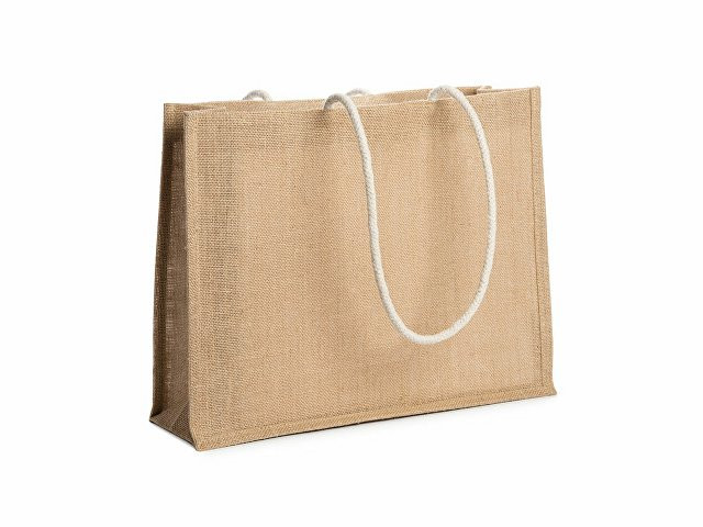 Прямоугольная пляжная сумка из джута с хлопковыми ручками длиной 70 см (диаметр 9-10 мм).