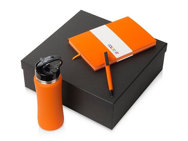 Color It — линейка, в которую входят хиты мерча в десяти самых популярных цветах. Еще никогда собрать сет под свой брендбук не было так просто. Широкая цветовая палитра серии позволяет создать идеальный набор в едином оттенке Pantone. Все товары имеют тактильно приятное покрытие софт-тач. Сет поставляется в коробке: мы продумали все, включая подарочную упаковку, за вас — осталось нанести лого! Спортивная бутылка для воды сделана из нержавеющей стали, а в пластиковой крышке предусмотрено специальное отверстие для питья, которое позволяет пить в движении. Бизнес-блокнот в гибкой обложке имеет ляссе в тон обложки и среза. Бумажный блок разлинован в линейку и выполнен из бумаги, полученной из древесины из специальных восполняемых лесных ресурсов, имеет сертификат FSC. Тонкое письмо ручки обеспечивается пишущим узлом с толщиной письма 0,5 мм с нажимным механизмом. Ручка имеет сменный стержень, поэтому такой мерч прослужит дольше обычной одноразовой ручки, долго напоминая о вас клиентам. - объём бутылки: 600 мл; - блокнот А5 128 листов; - ручка с необычным слайдером; - подарочная упаковка из картона, оклеенного дизайнерской бумагой уже включена в набор.
